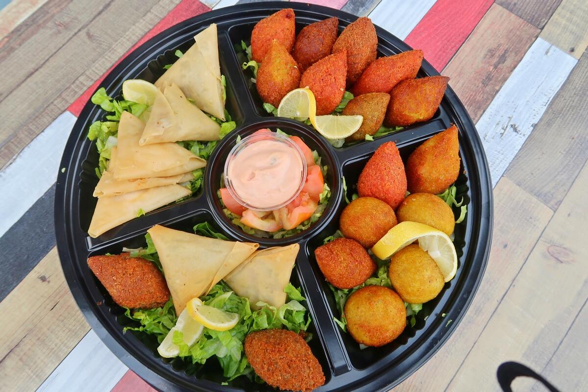 HomeHot Mazza PlatterHot Mazza Platter0DescriptionSpicy chicken wings, onion rings, mozzarella fingers, fajitas, sausages, rice kibbeh, beetroot kibbeh, burghul kibbeh, and in addition to chicken liver, chicken shawerma, and meat chawerma in the big platterSizeMediumLarge